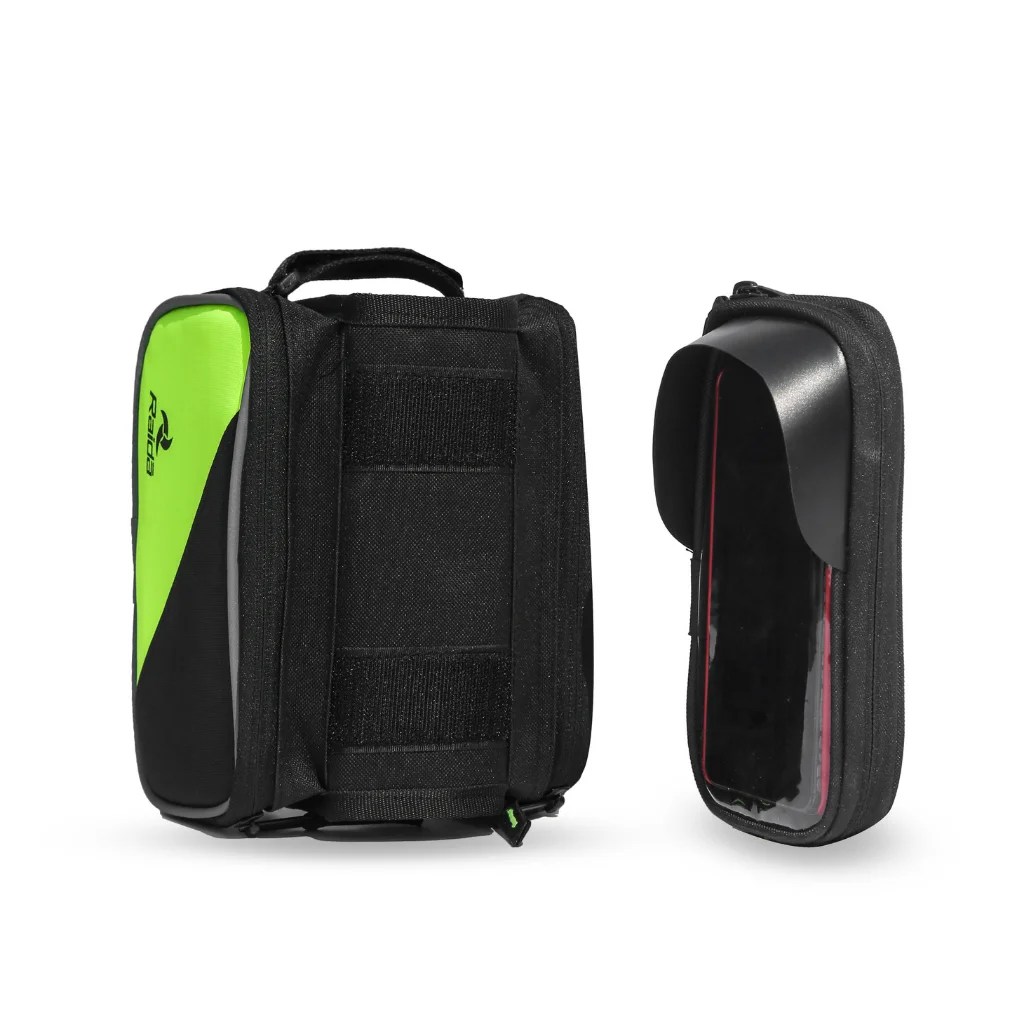 Raida F-series Pro Bicycle Frame Top Tube Bag is constructed using as many sourced materials as possible. The sides has pockets for wallet, key, power bank, gloves, bike repair tools and other items. The Top has TPU material to use the touch screen suitable upto 6.2 inches Smart Phone. With a lightweight minimalist design, Raida top tube bag is perfect for a daily commute or day trip. It actually sits on the top tube and has a soft non-scratch base and strap protectors that won’t damage paint on bikes. It attaches to both the top tube and the bike stem with Velcro straps.